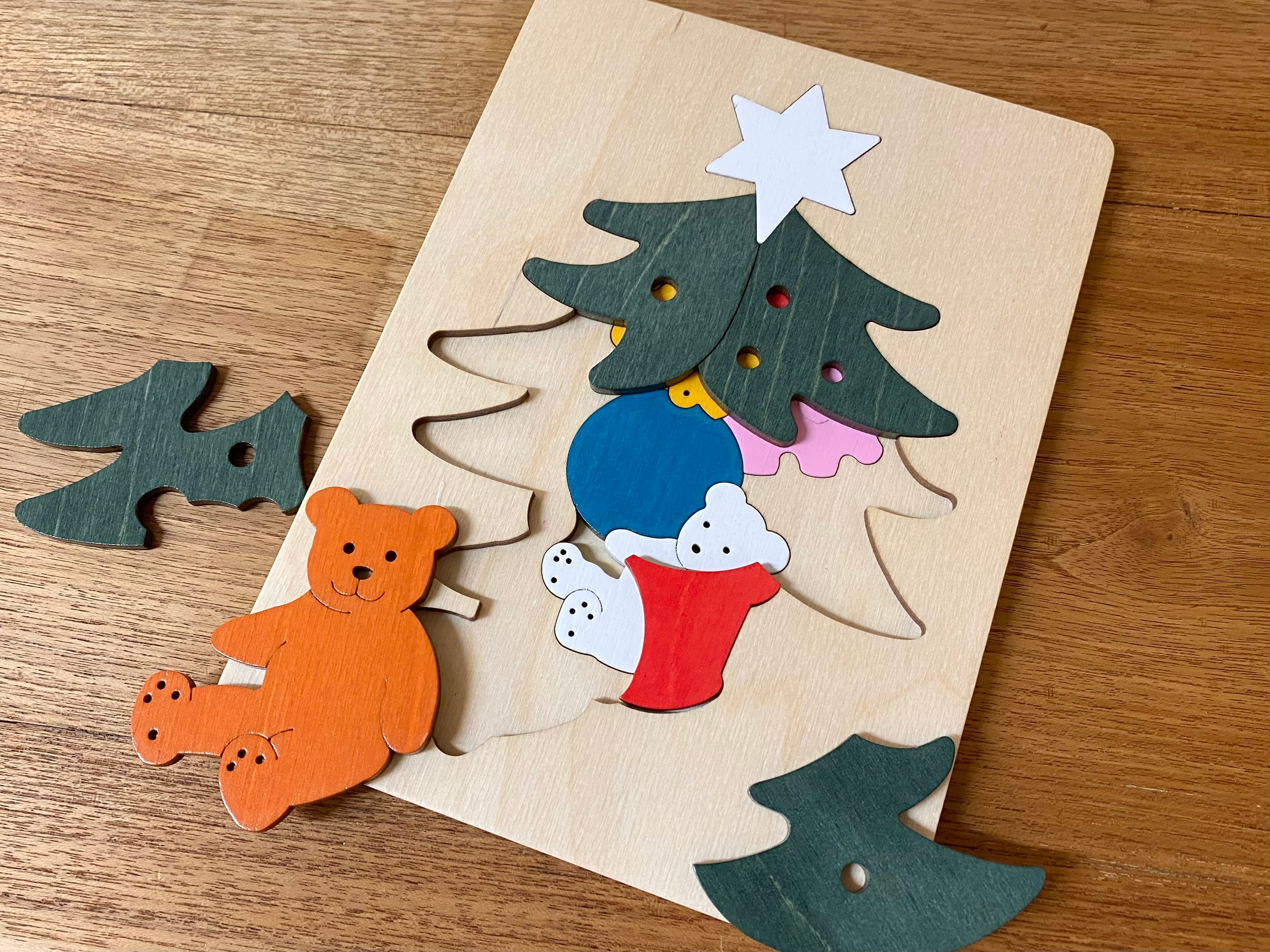 1層目のもみの木やクマのピースを外すと、ボールやぬいぐるみなど2層目のプレゼントのピースが現れます。