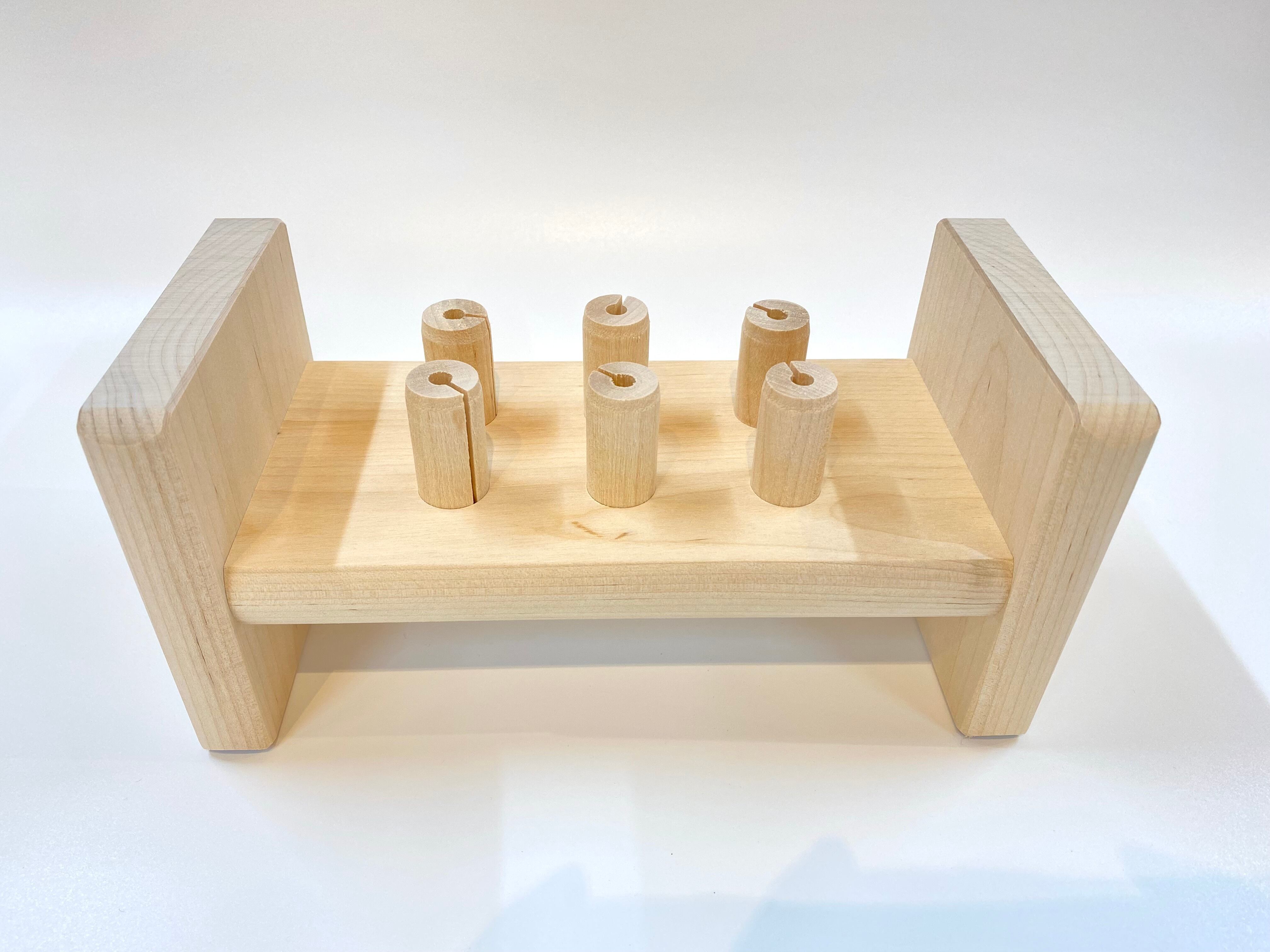 6本のペグをトントン…と、台とフラットになるまで叩き、ひっくり返すと、また叩けるという仕組みです。