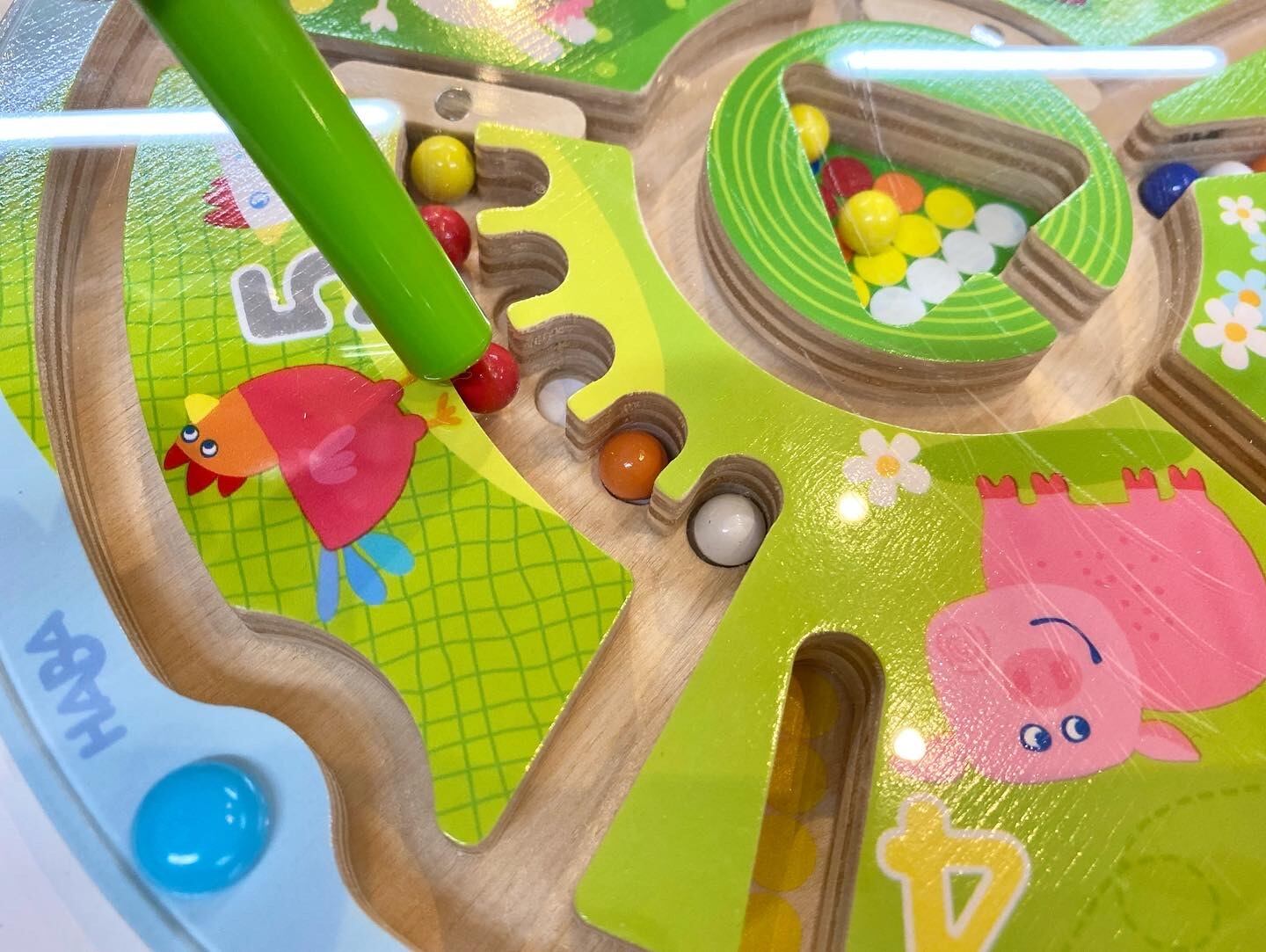 動かしたいボールだけでなく他のボールまでくっついてきたり、入れたいくぼみにうまく入らなかったりと、見た目以上に難しくておもしろい!