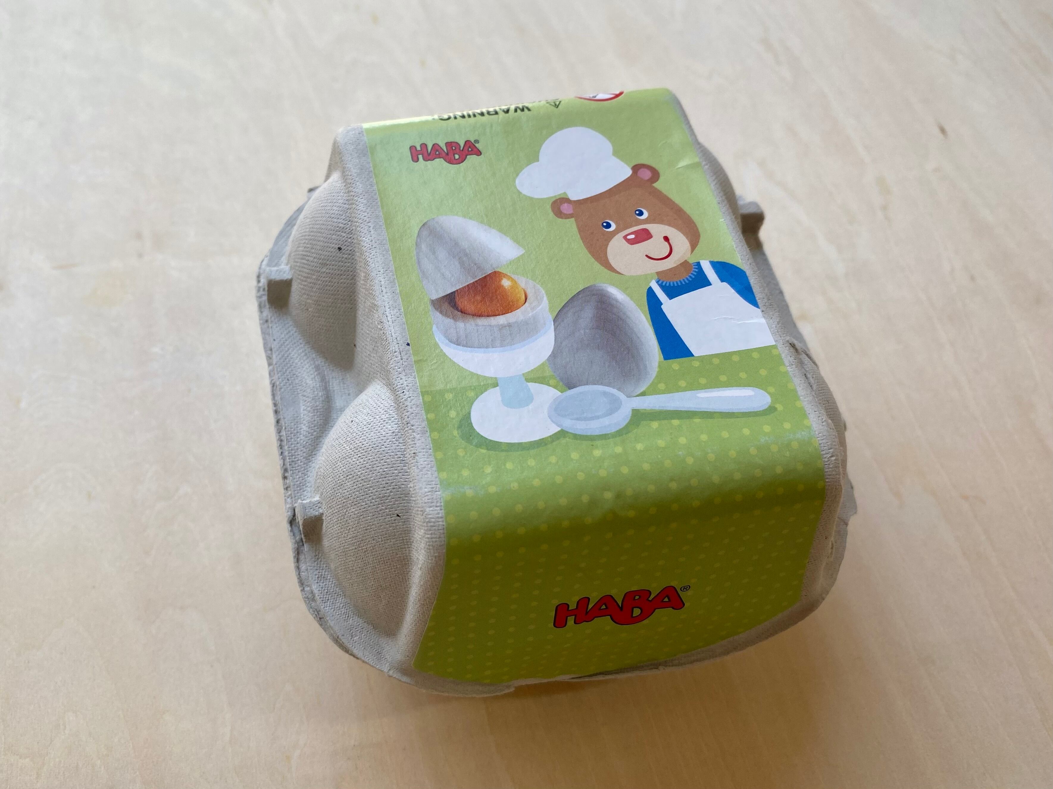 かわいい紙パックの中に、木目が美しい卵が入っています。